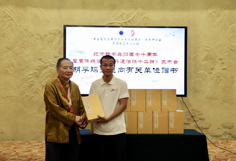 近日,《丹道法诀十二讲》的作者、老子道学文化研究会创会会长、中国社会科学院哲学研究所研究员胡孚琛教授向北京大学赠送最新出版的繁体线装版《丹道法诀十二讲》,北京大学哲学系程乐松教授代表北京大学接受了赠书。 繁体线装版《丹道法诀十二讲》的出版发行,不仅是对钱学森先生归国七