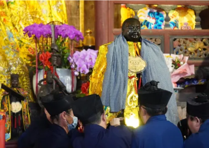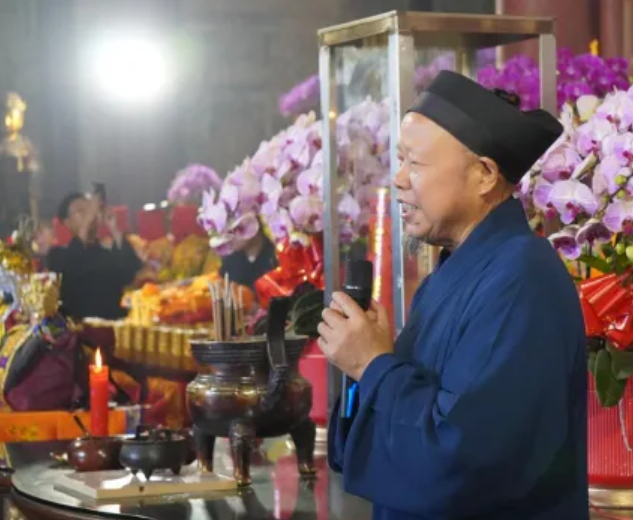 9月29日上午,武当山紫霄宫张灯结彩,玄帝神尊回銮安座仪式在此举行。刘文国会长率仪仗队迎神尊入殿、安奉于原位,闽台各宫观代表依次行铭香、鲜花、明灯、净水、鲜果呈敬之礼,虔诚礼拜。刘文国表示,神尊巡安功德圆满、紫霄大殿修缮重现灵光,既是道脉传承盛事,更是“华夏同根、两岸一家”的生动体现,呼吁广大信众深化两岸道脉联结,让玄帝圣德光耀千秋。
