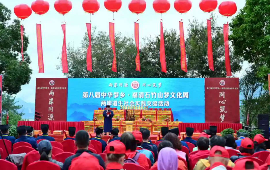 10月28日,第八届中华梦乡·福清石竹山梦文化周在福州福清启动。近五百名来自海峡两岸的道教界人士、宫庙和信众代表等齐聚一堂,共叙亲情友谊,共赴文化盛宴。本届梦文化周活动以“两岸同源·同心筑梦”为主题,旨在更好发挥两岸道教界同根同源、一脉相承的特殊优势,进一步深化两岸交流融合,广泛团结凝聚两岸同胞共创中华民族绵长福祉的人心和力量。中国道教协会秘书长匡盛、福建省民族与宗教事务厅厅长兰明尚、福建省政协民宗委主任林卫宠等出席启动仪式。