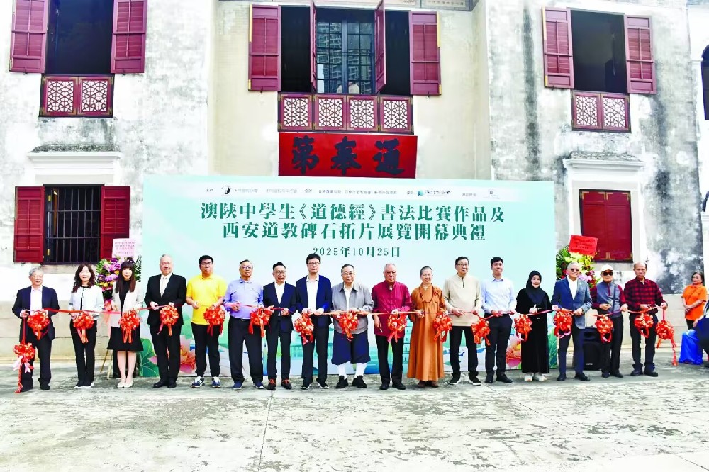 由澳门道教协会、澳门道教青年协会主办的“澳陕中学生道德经书法比赛作品及西安道教碑石拓片展览”,昨假郑家大屋开幕。分别在积善堂、庆余堂及内院展出珍贵的道教主要发祥地西安道教碑石拓片,还有当代道教艺术家书法、绘画、雕塑、陶瓷、香港蓬瀛仙馆“道通天地”频道多媒体。同场亦展出澳门、西安中小学生《道德经